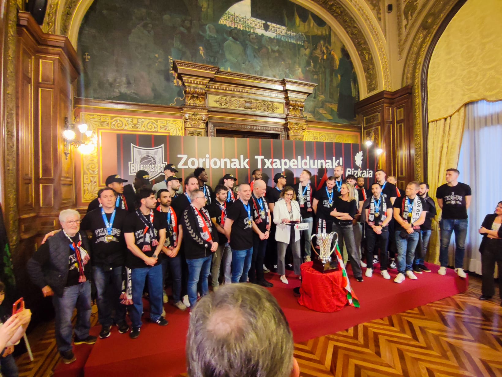 El pasado viernes, 25 de abril, Aspace Bizkaia tuvo la oportunidad de participar en la recepción oficial que la Diputación Foral de Bizkaia ofreció al Surne Bilbao Basket, con motivo de su reciente título como campeones de la FIBA Europe Cup.
