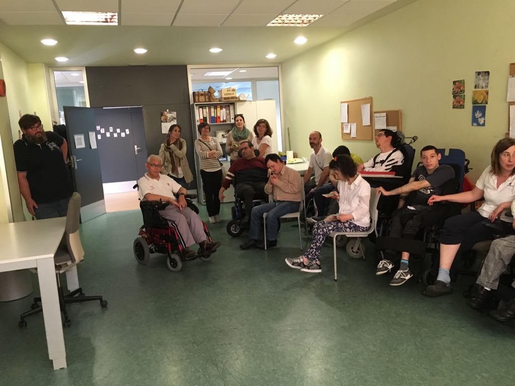 De ahí fuimos a visitar el Centro de Día de Adultos de Txurdinaga, donde Emilio Mato, persona usuaria del centro, nos hizo un itinerario por todo el centro. En cada módulo nos tenían preparadas unas presentaciones a cargo de las personas usuarias del centro que fueron las auténticas protagonistas de las visita. También visitamos la Sala Snoezelen. Además nos obsequiaron con un jabón ecológico hecho por uno de los módulos. Salimos muy contentas y contentos.
