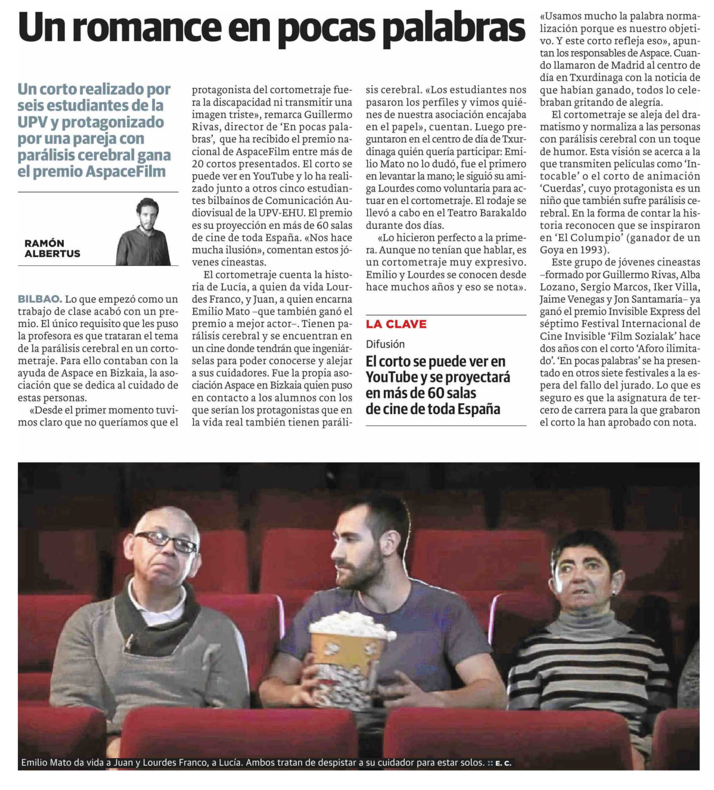 Este premio ha tenido una gran repercusión en los medios de comunicación en los meses de julio y agosto. Y tanto en prensa escrita, como en radio, televisión o en internet, han aparecido reportajes sobre las personas ganadoras de AspaceFilm 2017: