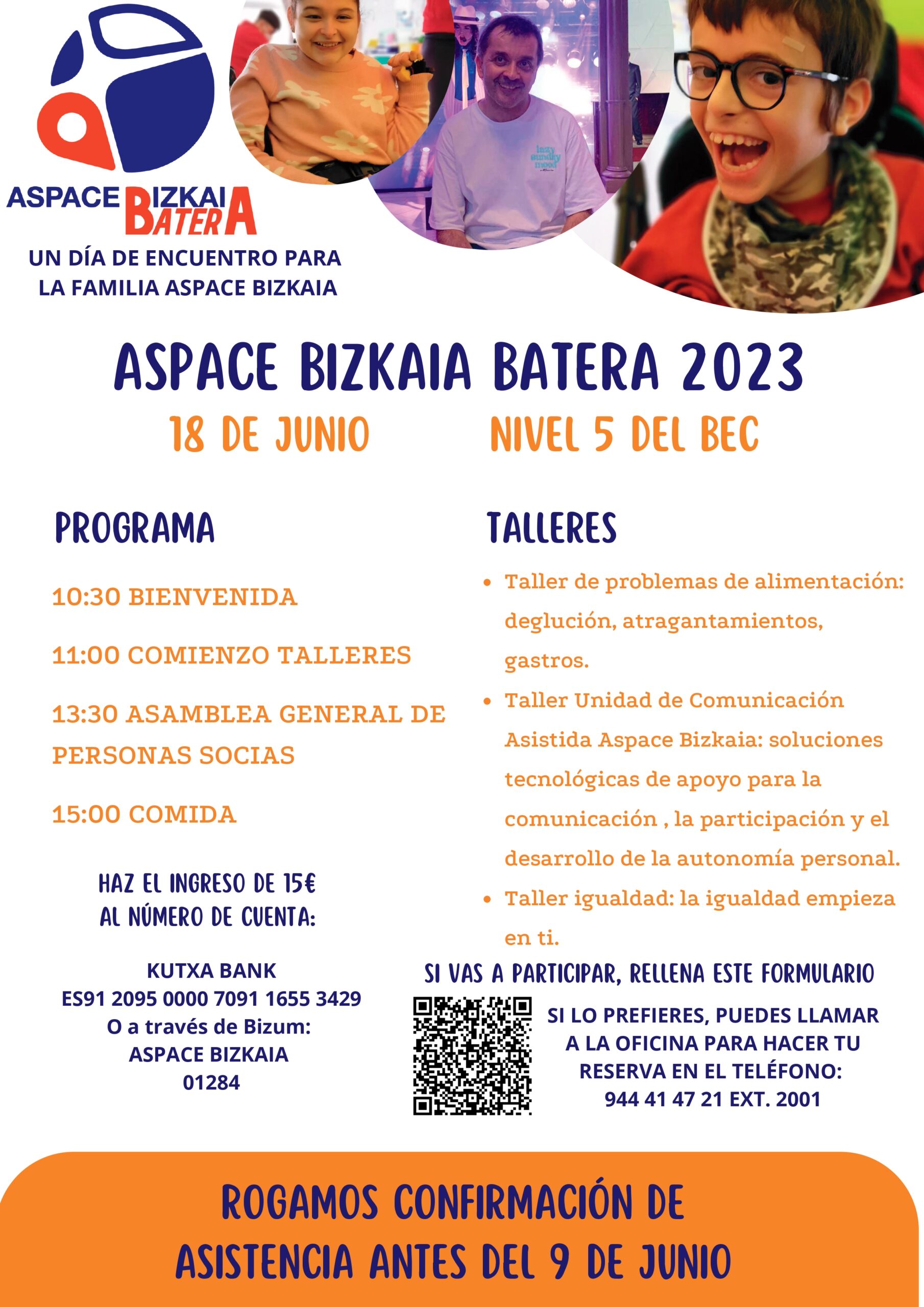 De cara a organizar este encuentro, os rogamos que confirméis la asistencia (familias, plantilla, voluntariado), antes del viernes 20 de enero de 2023, especificando si vais a hacer uso del servicio de acompañamiento, llamando al teléfono de los servicios centrales de Aspace Bizkaia: 94 441.47.21.