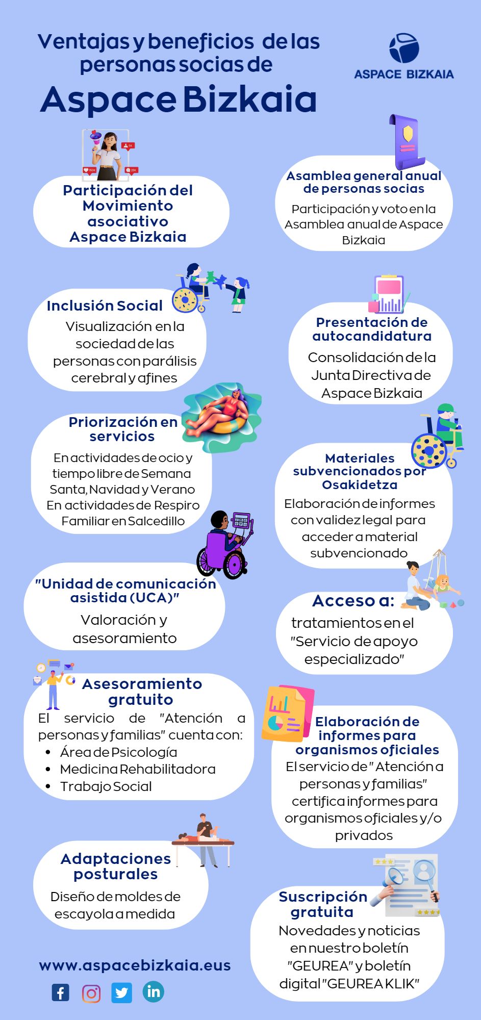 El próximo domingo 18 de junio celebraremos el #AspaceBizkaiaBatera, un día para la familia de Aspace Bizkaia en el que celebraremos la Asamblea General de Personas Socias, además de unos talleres sobre problemas de alimentación, la Unidad de Comunicación Asistida, igualdad… Y terminaremos comiendo todos y todas juntas.