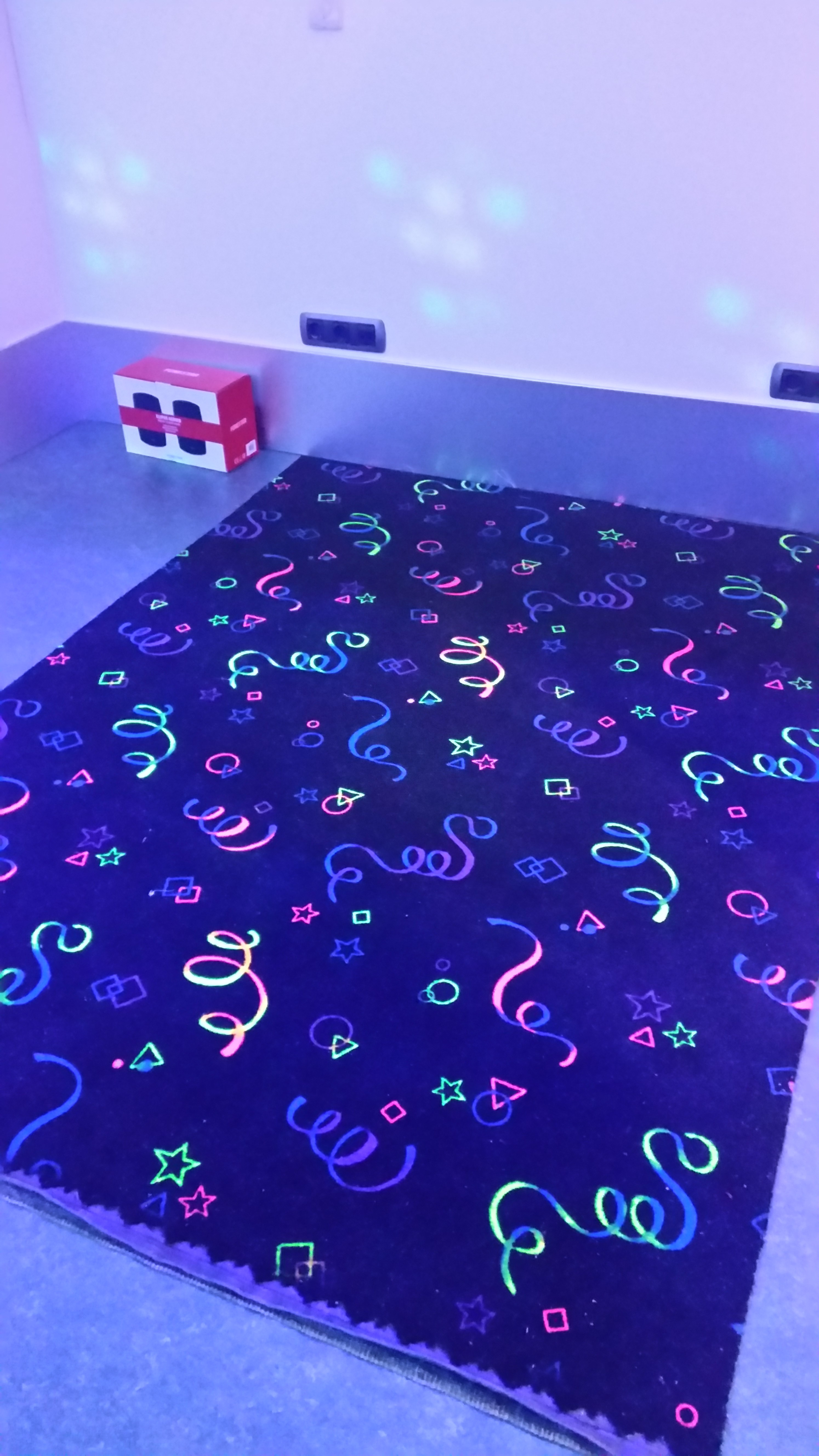 Este espacio es un lugar habilitado para interactuar con el medio a través de la estimulación de los sentidos. El aula es un espacio flexible con múltiples posibilidades que se pueden adaptar a las necesidades de cada persona usuaria. Una cama de agua caliente con altavoces, abundantes estímulosvisuales y sonoros y controles táctiles.